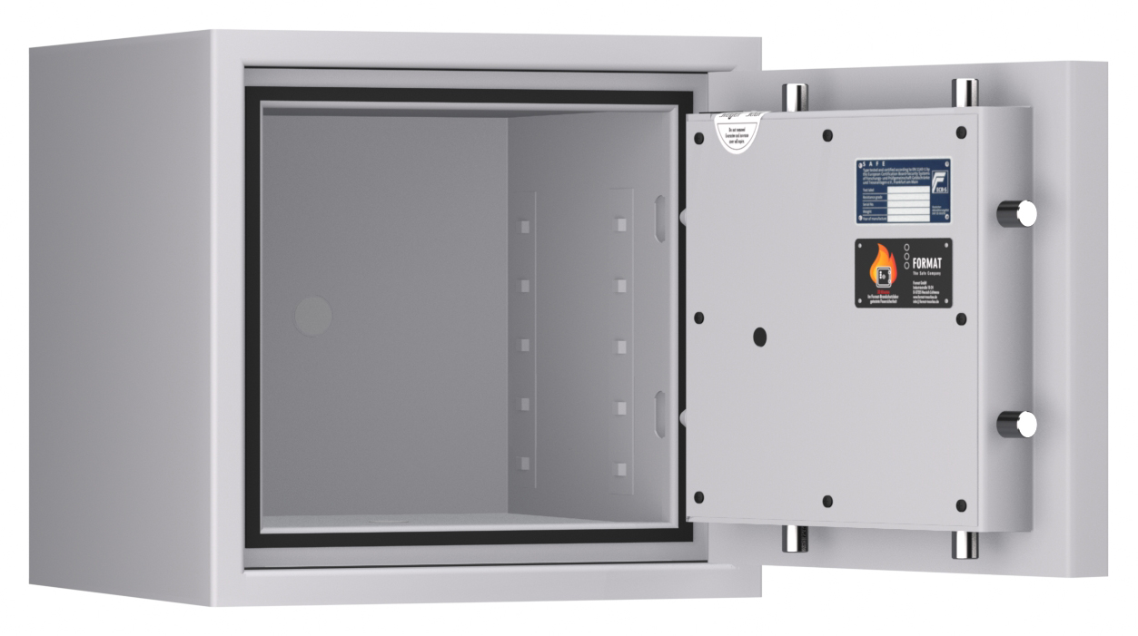 Feuerschutz: 30 Minuten Brandschutz inkl. umlaufender Spezialdichtung zum Brandschutz und Schutz vor Löschwasser oder Löschschaum in der Tür. Getestet im FORMAT-Brandschutzlabor.
