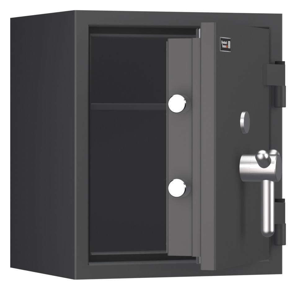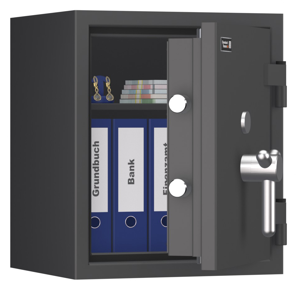 - Höchst widerstandsfähige Türfront und Korpus gegen Angriffe mit mechanischen und thermischen Einbruchwerkzeugen