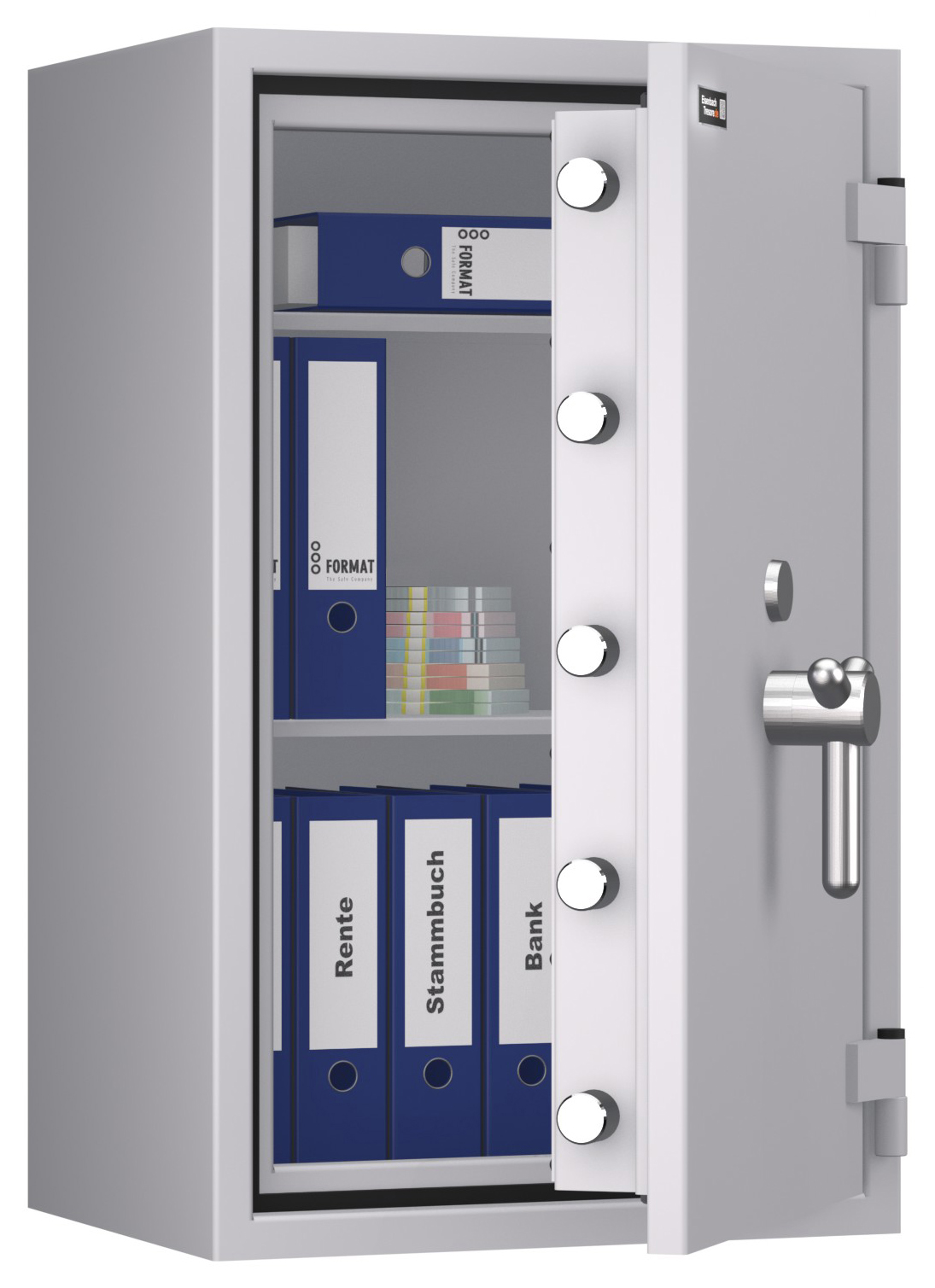 - Höchst widerstandsfähige Türfront und Korpus gegen Angriffe mit mechanischen und thermischen Einbruchwerkzeugen