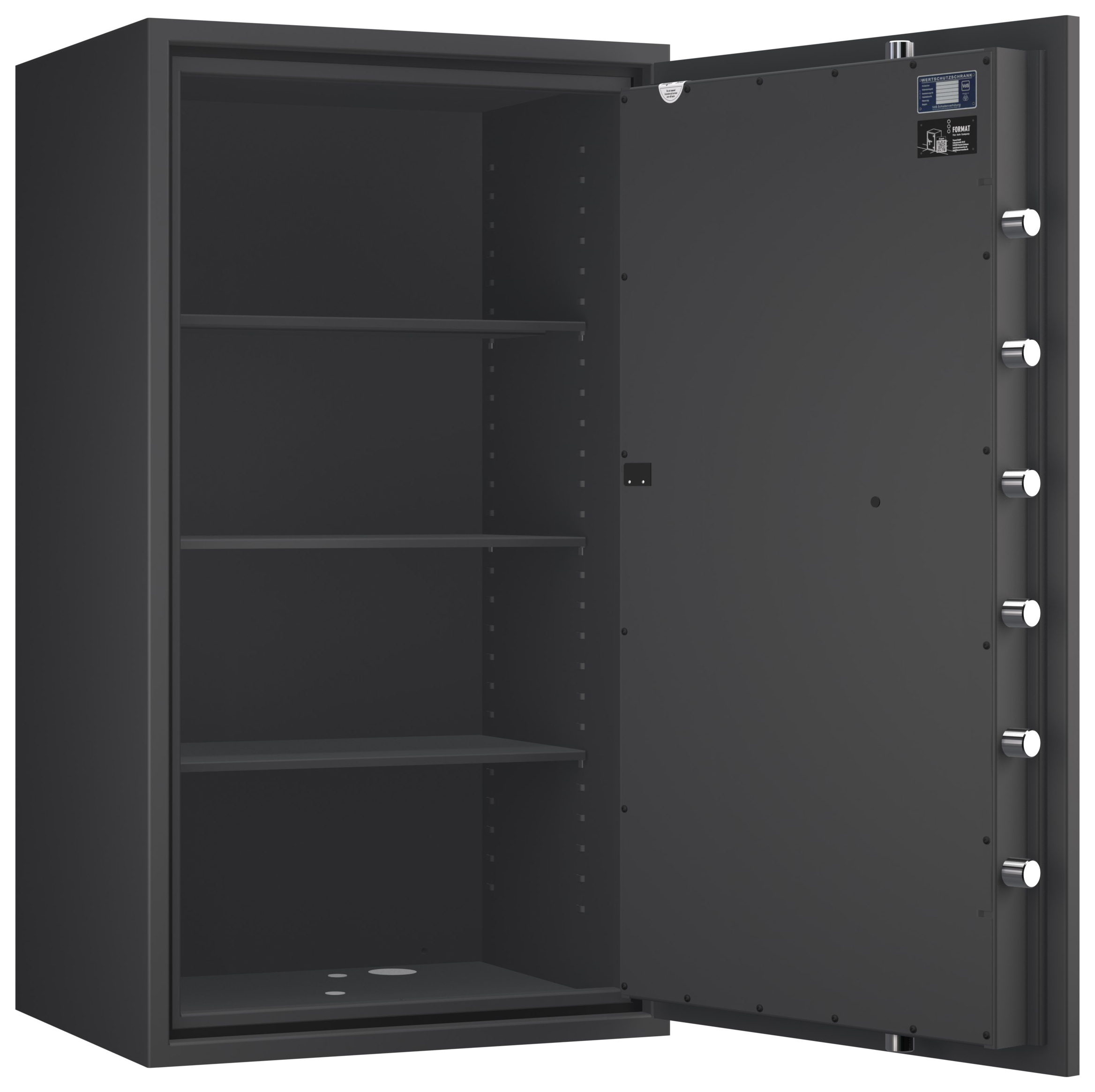 - Höchst widerstandsfähige Türfront und Korpus gegen Angriffe mit mechanischen und thermischen Einbruchwerkzeugen.