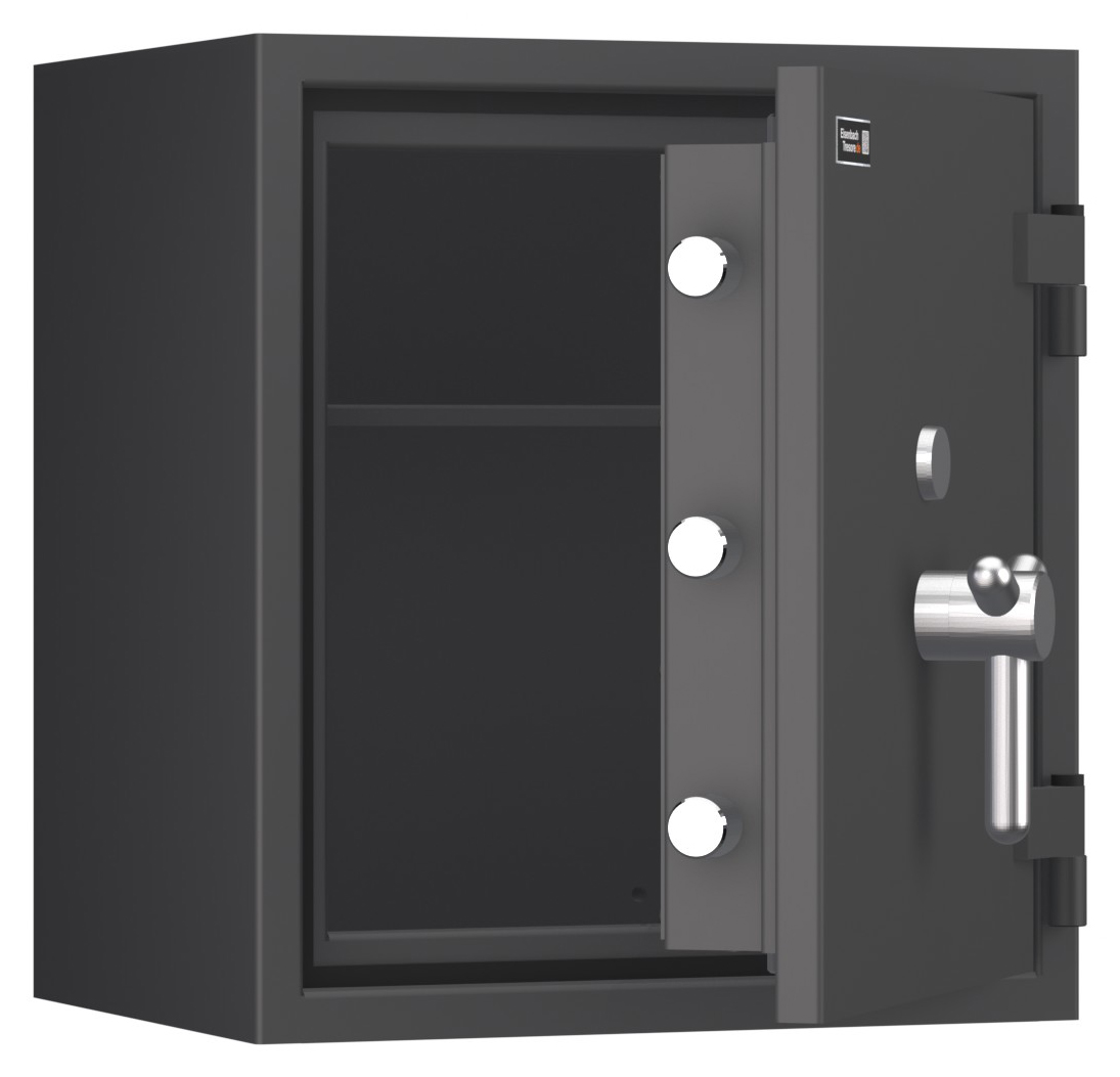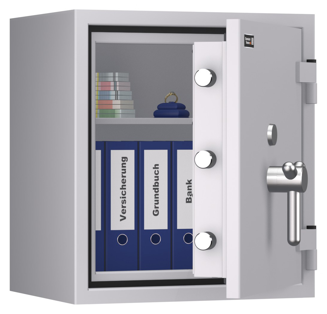 - Höchst widerstandsfähige Türfront und Korpus gegen Angriffe mit mechanischen und thermischen Einbruchwerkzeugen