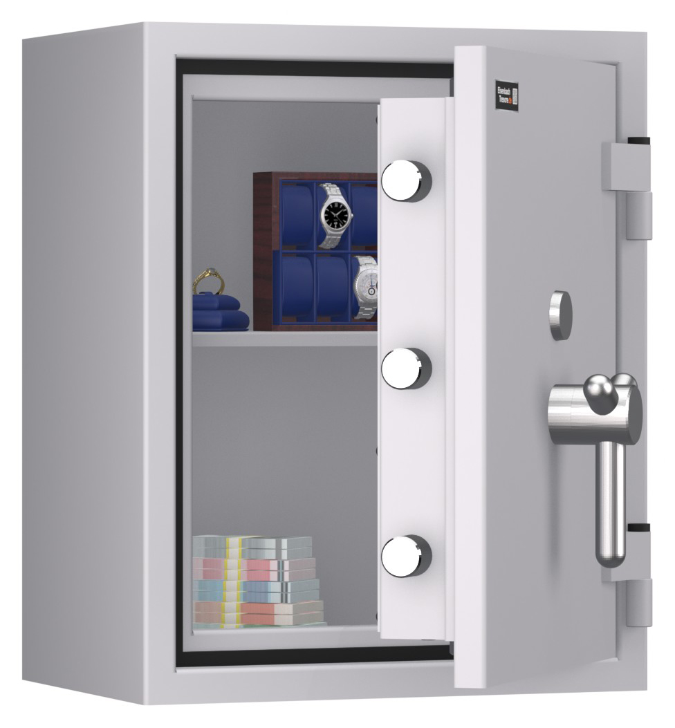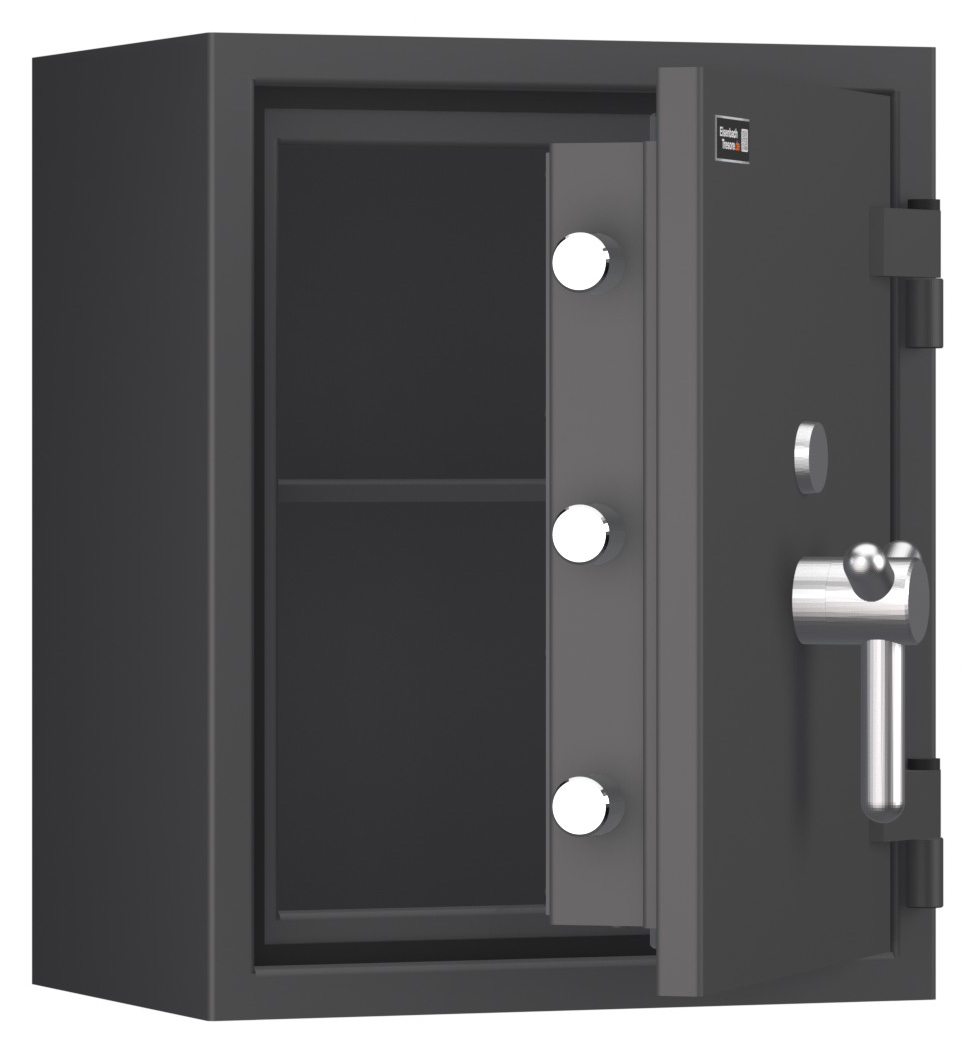 - Höchst widerstandsfähige Türfront und Korpus gegen Angriffe mit mechanischen und thermischen Einbruchwerkzeugen
