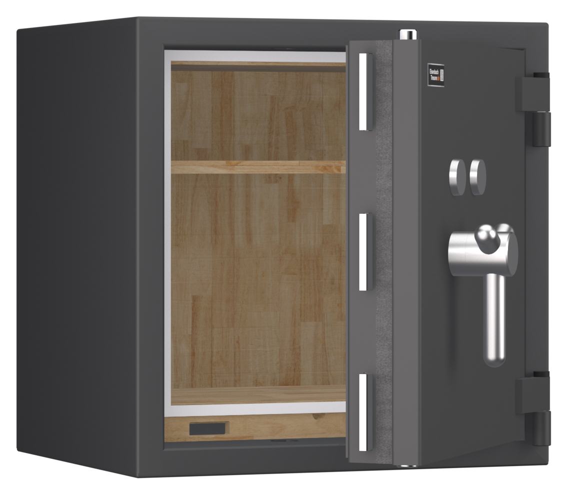 - Höchst widerstandsfähige Türfront und Korpus gegen Angriffe mit mechanischen und thermischen Einbruchwerkzeugen