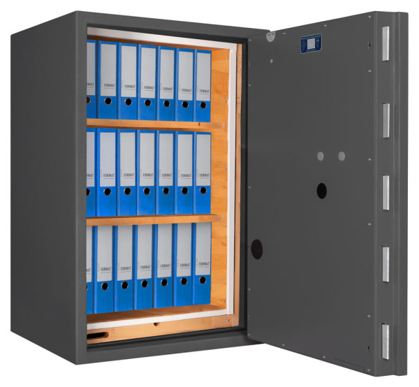 - Höchst widerstandsfähige Türfront und Korpus gegen Angriffe mit mechanischen und thermischen Einbruchwerkzeugen