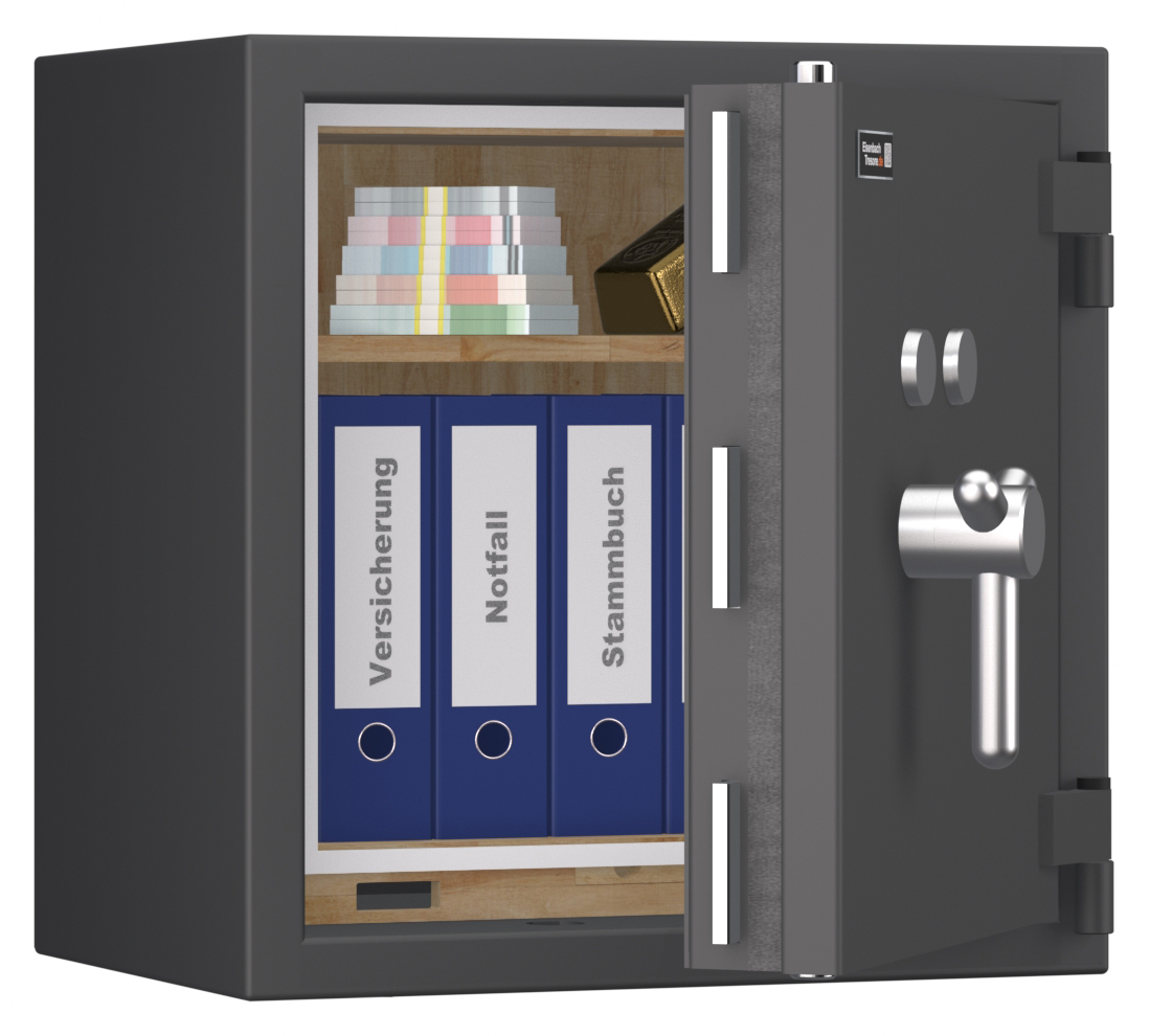 - Höchst widerstandsfähige Türfront und Korpus gegen Angriffe mit mechanischen und thermischen Einbruchwerkzeugen